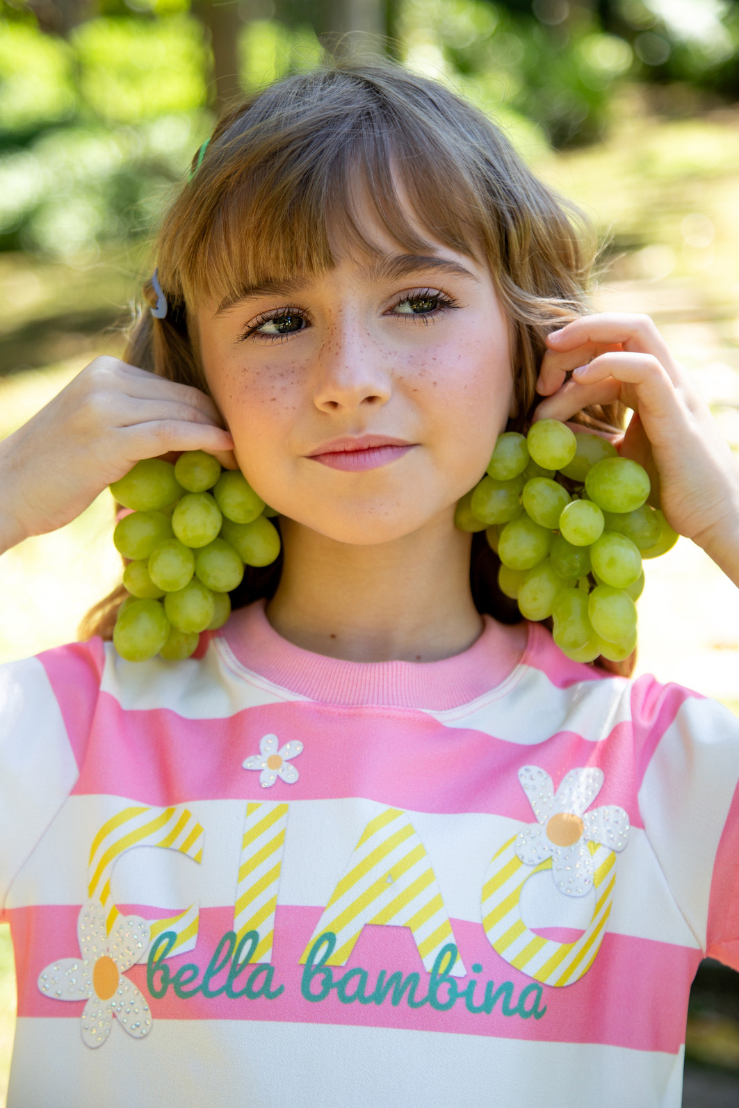 Blusa em malha texturizada Paris, com a frase “Ciao Bella Bambina” (Olá, linda menina) e aplicação de strass irisados que garantem um brilho encantador. Possui modelagem cropped sem mostrar a barriga e o melhor: não precisa ser passada — prática e cheia de charme!
